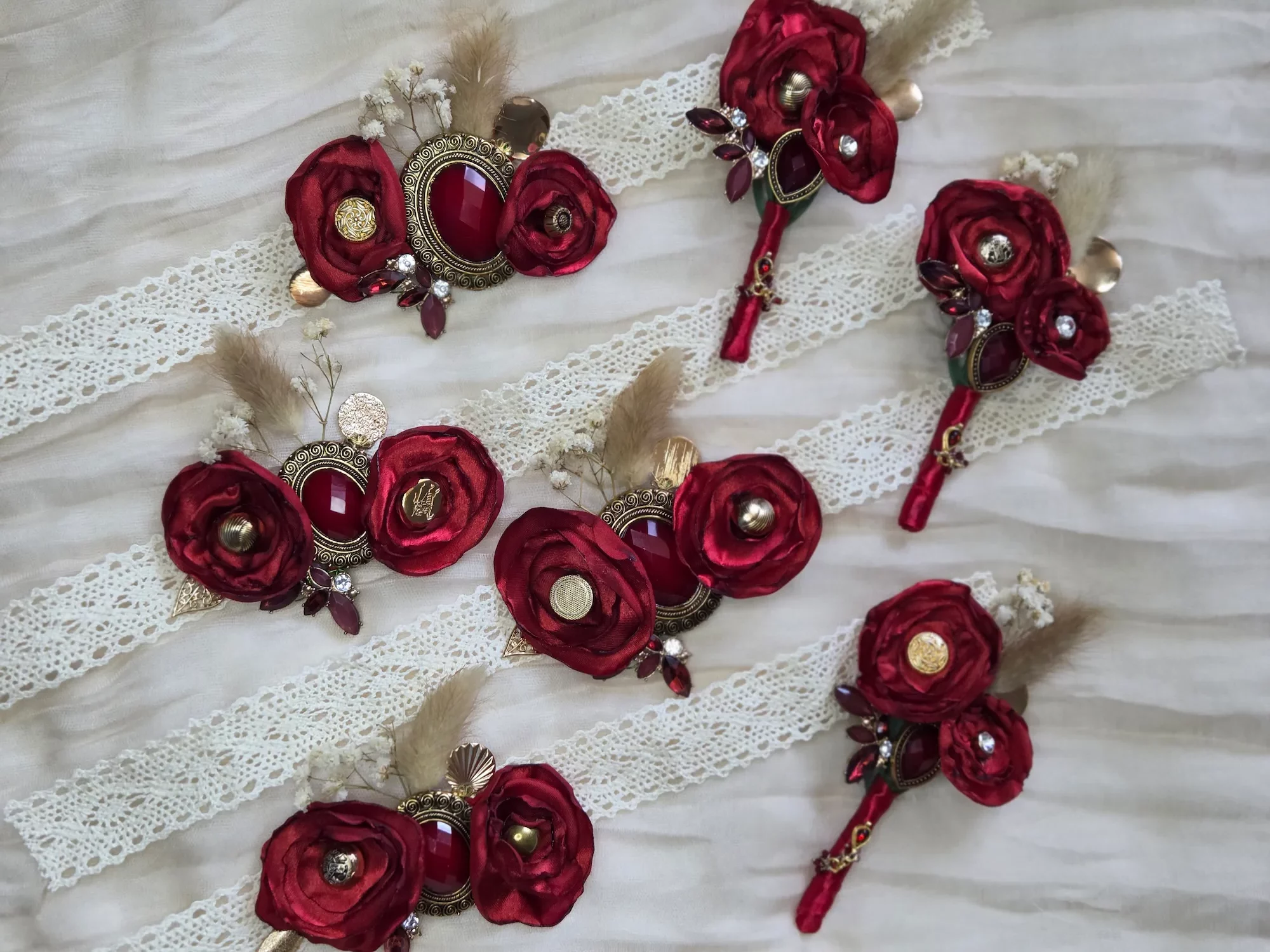 Bracelets, boutonnières, bijoux de tête… chaque pièce est pensée comme une extension du bouquet ou comme une création autonome, toujours en cohérence avec votre histoire.