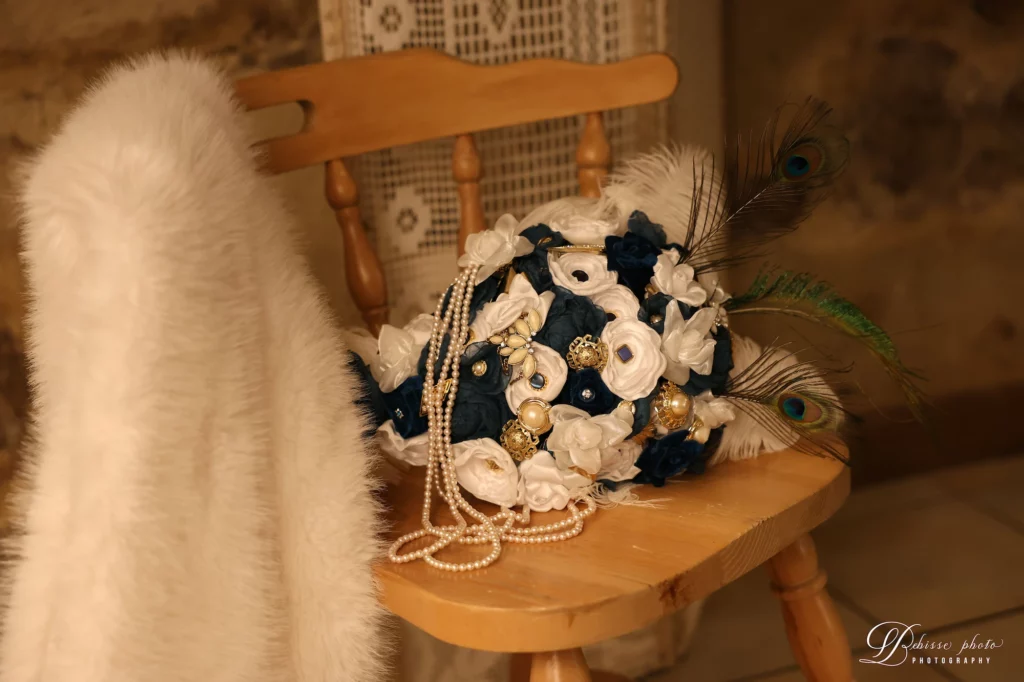 Composés à partir de bijoux anciens, de broches, de tissus ou de détails oubliés, ils deviennent des bouquets uniques, chargés de sens et d’émotion.